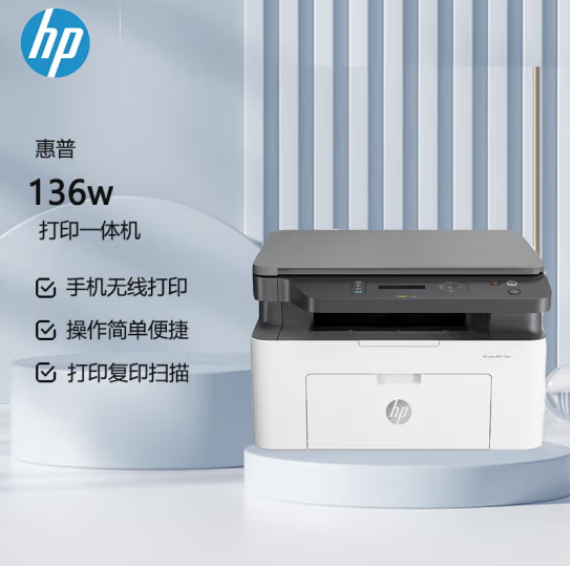 惠普(HP)136w 黑白激光多功能一體機(jī) A4黑白銳系列激光多功能一體機(jī) 無線打印 復(fù)印 掃描三合一 打印復(fù)印掃描 M1136升級款無線版